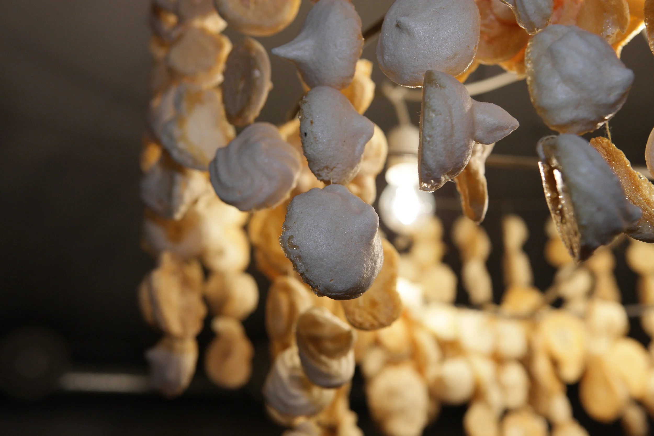 Behind the White Curtain – a Culinary Wintertale was a dining event consisting of a fairy tale-themed room installation and a four-course-menu. The event took place in winter 2011/12 at the Eat-Art-Gallery Zagreus Projekt, Berlin-Mitte. Every course was based on a different well-known fairy-tale, represented throughout the evening by the installation and its ambience, the crockery, the food itself, and in the overall dining experience. Hence, the guests were actively involved in the theme and its development; they became part of the installation, experiencing their own version of this culinary tale by chatting with one another, sharing and discovering, eating and savoring, maybe even slipping into character.